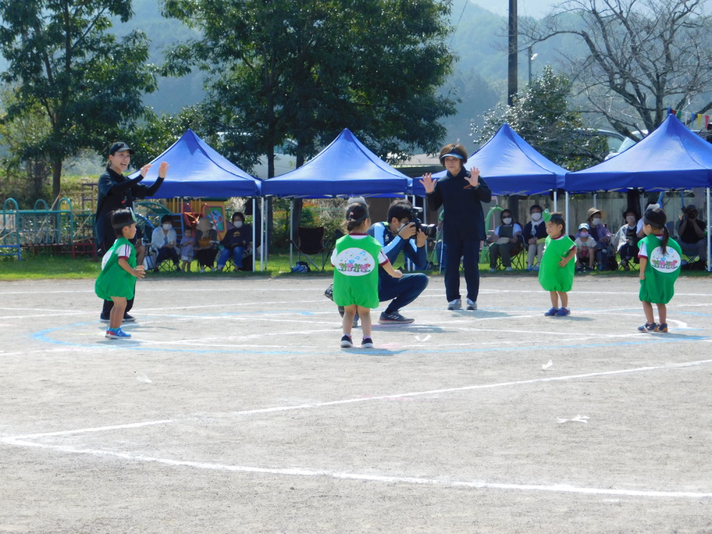 運 動 会 1 2021 10/01 お知らせ 2021年10月1日 さくら組さんの本番終了後の記念写真です。 もも組さん。大好きなアンパンマンのお面をかぶり、のお父さん、お母さんとのお遊戯です。 引き続き技走です。 今日はとてもいいお天気で和太鼓の大きい音も青空に吸い込まれそうです。 たんぽぽ組さんのカエルの体操です。衣装を着けると「ぴょんぴょん」元気いっぱい飛び回ります。 自分で作ったマラカスを持って楽しく「PLAY」を踊っているうめ組さんです。 幼年消防隊です。少々緊張していますがとても決まっています。 お知らせ 今年度最後の水遊び、以上児の皆さんは泡プールです。 運 動 会2 関連記事 陶芸教室でカップと皿を作りました。 2025年8月28日 先日収穫をしました玉ねぎのクッキングです。 2025年7月9日 今日はたらぎ保育園のお友だちとの玉ねぎの収穫交流会です。5/22 2025年7月9日 救急教室を行いました。 2025年7月9日 野菜の収穫です。 2025年7月9日 楽しみにしていたいちご狩りに行きました。 2025年7月9日 親子遠足でグリーンパレスへ行きました。4月12日(3) 2025年4月25日 親子遠足でグリーンパレスへ行きました。4月12日(2) 2025年4月25日